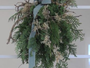 フレッシュなコニファー類に苔むした枝などを組み合わせた どことなく北欧テイストのスワッグ ナチュラルで野性味たっぷりだけれどシックで趣のあるスワッグです。 タイトルは『ラドゥースの森のスワッグ』 ラドゥースらしいデザインを考えました。 スワッグはこのままドライになるのでしば…